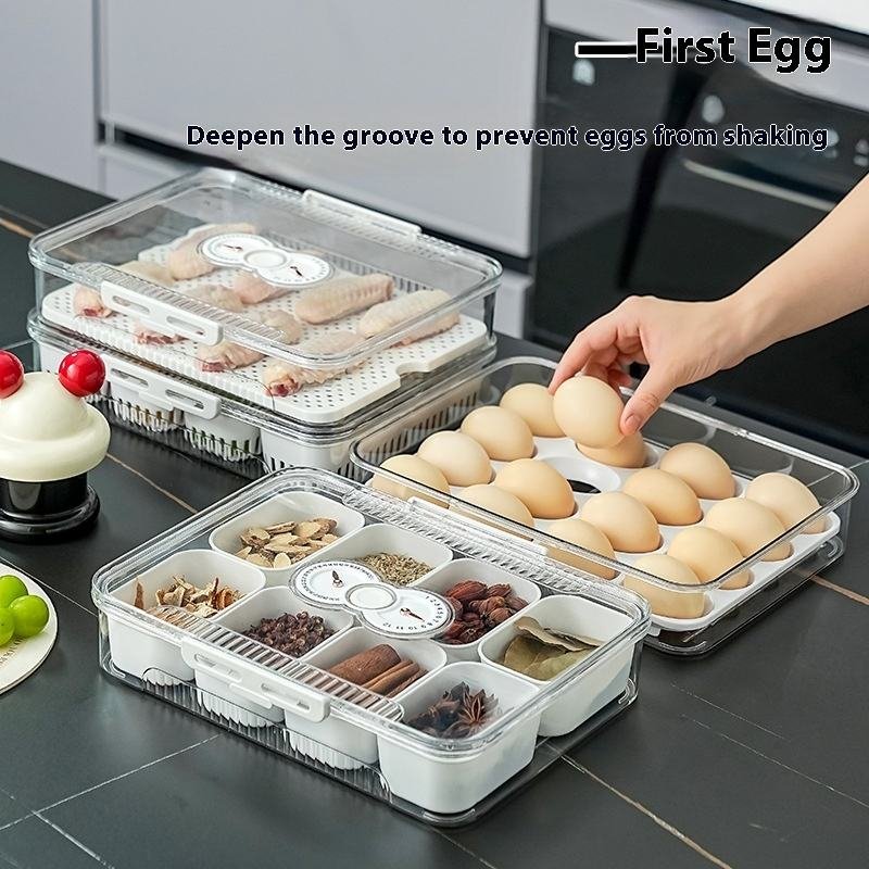 COIZY Plastic Fresh-Keeper Storage Box keeps food fresh and organized, ideal for storing eggs, spices, and seasonings in the refrigerator.